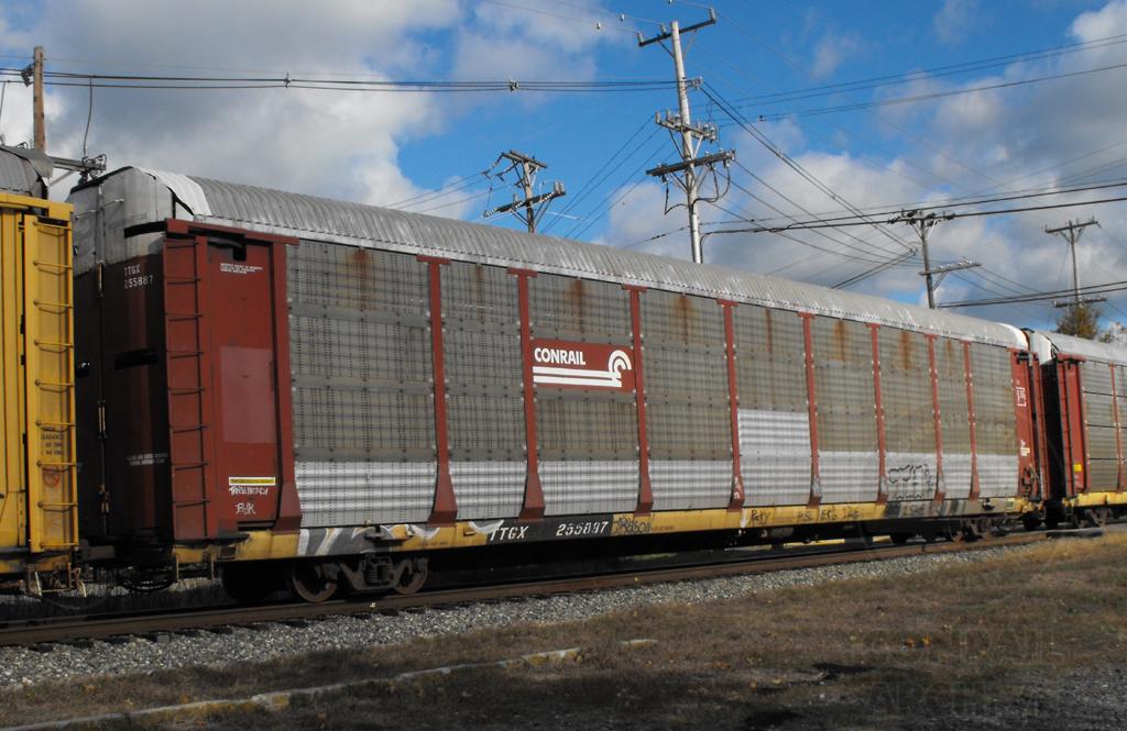 TTGX 255887 is seen on Q217-21 at Newark DE on 10/21/11. Rack number is CR 6802 and is now owned by NS.
