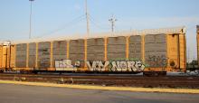 TTGX 255894 is seen in the consist of CSX Q216-05 at Elsmere, DE on 6/7/18. Rack was built as CR 1451, a CR ML2E class rack, in 5-86, then was rebuilt, repainted and renumbered to NS 27241 in 6-05. Rack is now classed FB542 by NS.