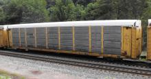TTGX 255919 is seen in NS paint on Q276-10 at Fairhope PA on 8/11/12. Rack was built as a unknown ML2F in 7-86 and rebuilt, repainted and renumbered to NS 27060 in 3-05. Rack now carries NS rack class FB543.