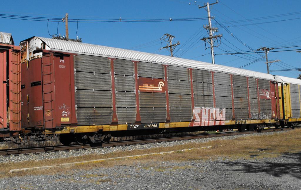 TTGX 604269 is seen on Q217-08 at Newark DE on 10/8/11. Rack number is CR 6762 and is now owned by NS.