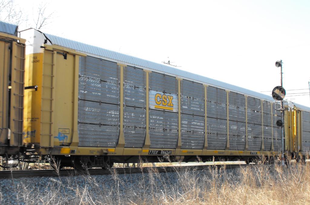 TTGX 604341 is seen on Q217-06 at Elk Mills MD on 4/6/11. Rack number is CR 8241 and was built as a CR ML2L class rack in 5-90. It was thenrebuilt and repainted CSX in 2-06.