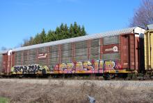 TTGX 604622 is seen in the consist of CSX Q216-20 at Newark, DE on 3/22/20. Rack number is CR 6797, built 10-88 and is now owned by NS.
