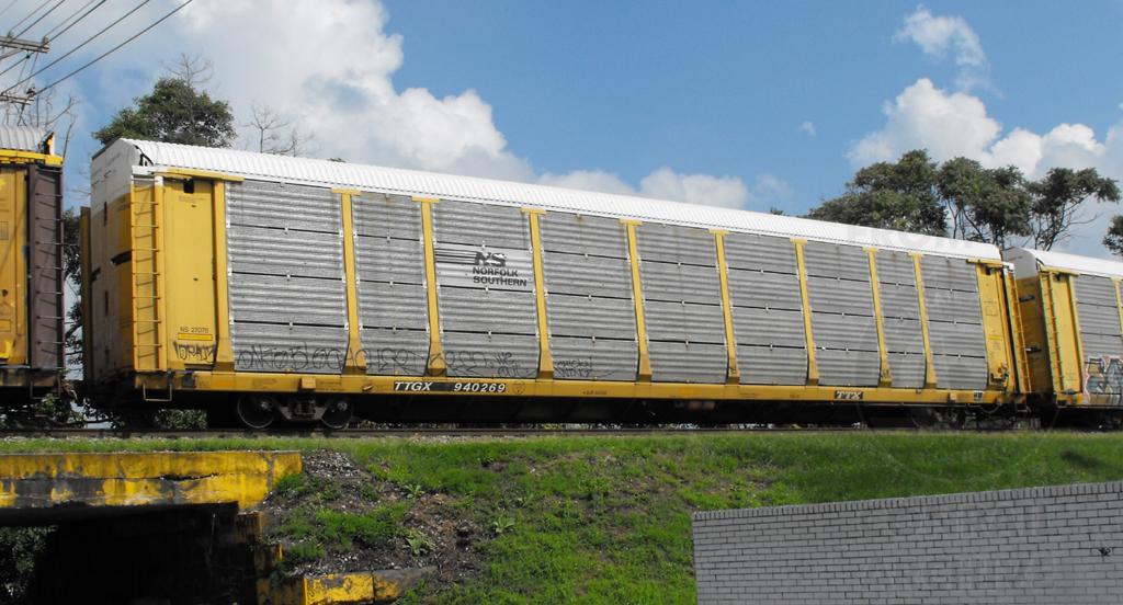 TTGX 940269 is seen in the consist of CSX Q217-10 at Newark, DE on 9/10/11. Rack was built, as a unknown CR class ML2M rack, in 4-91 then was rebuilt, repainted and renumbered to NS 27078 in 1-06. Rack is now classed FB549 by NS.