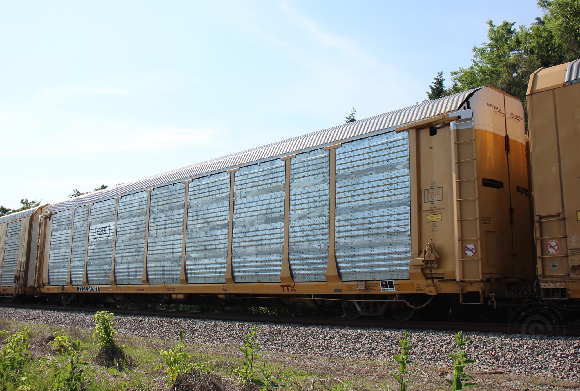 TTGX 940877is seen in the consist of CSX Q217-21 at Newark, DE on 5/21/22. Rack was built as CR 9457, a CR ML2L class rack, in 2-93. It was then rebuilt, repainted and renumbered to CSX B-9457 in 12-21 by MEI ESTL.