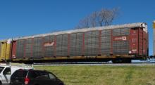 TTGX 941683 is seen in the consist of CSX Q216-22 at Newark, DE on 4/24/14. Rack number is CR 7596, built 1-89, rebuilt 2-97 and is now owned by CSX.