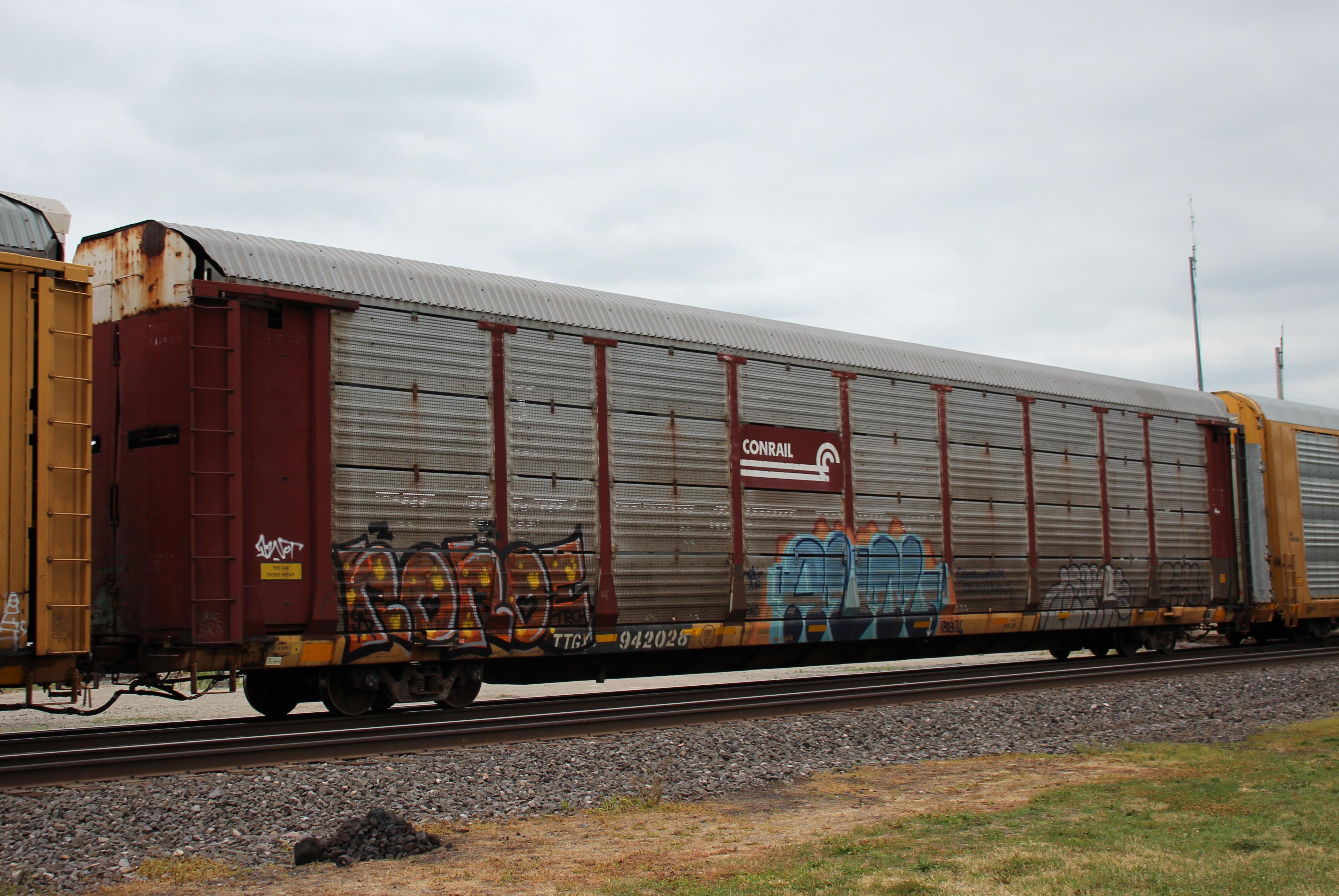 TTGX 942028 is seen in the consist of CSXM352-21 at Deshler, OH on 6/22/23. Rack number is CR 9175, built 1-92, and is now owned by NS.