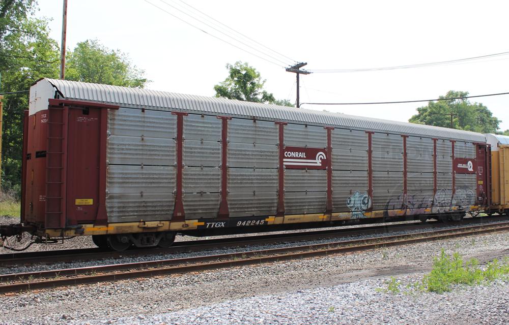 TTGX 942245 is seen in the consist of CSX Q276-10 at North Branch, MD on 6/11/15. Rack number is CR 9400, built 2-93 and is now owned by CSX.