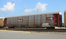 TTGX 942245 is seen in the consist of CSX Q216-19 at Elsmere, DE on 7/20/19. Rack number is CR 9400, built 2-93 and is now owned by CSX. Photo by Chris Carangi.