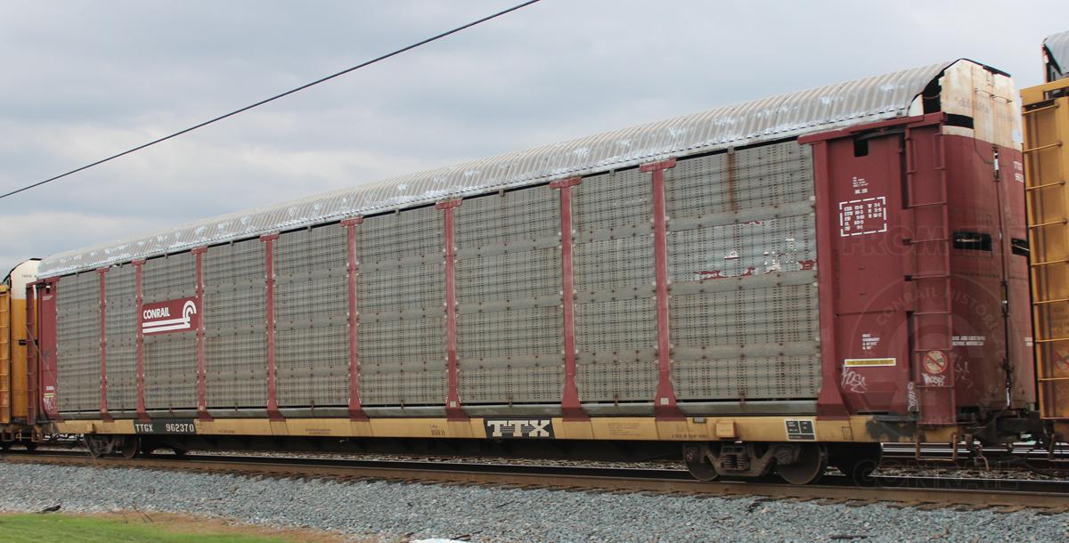 Previous Next Rack number is CR 1804 and was built 8-81, rebuilt 12-97. Photo By Donnie Lee Location Details Virginia Ave Equipment Type TTGX Bi-Levels Year 2012 Original Date 10/18/12 Collection CRHS Conrail Photo Archive Contributions