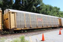 TTGX 962927 is seen in the consist of CSX L217-03 at Harpers Ferry, WV on 9/3/16. Rack number is CR 8043, built 4-90, rebuilt 2-99 and is now owned by CSX.