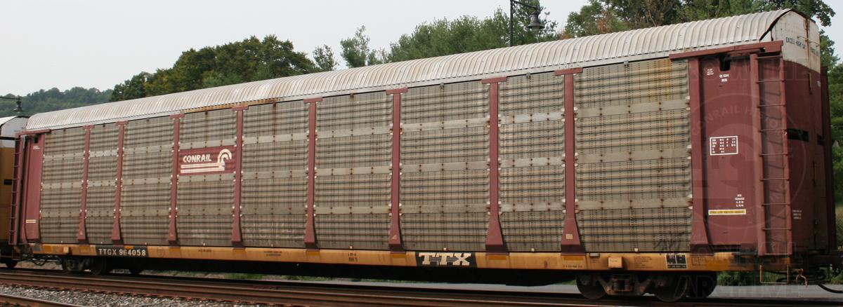 Flatcar TTGX 964058 is seen with CR class ML2L rack #8344. Rack was built 5-90 and was rebuilt 12-97.