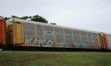 TTGX 964126is seen in the consist of CSX Q217-11 at Newark, DE on 9/11/22. Rack number is CR 6747 and was built as a CR ML2Gclass rack in 10-88 (stenciled 6-88). It was then rebuilt and repainted CSX in 8-13 by MRW-WR.