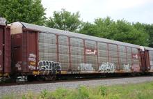TTGX 974142 is seen in the consist of CSX Q217-20 at Newark, DE on 5/20/22. Rack number is CR 10745, built 1-97 and is now owned by NS.