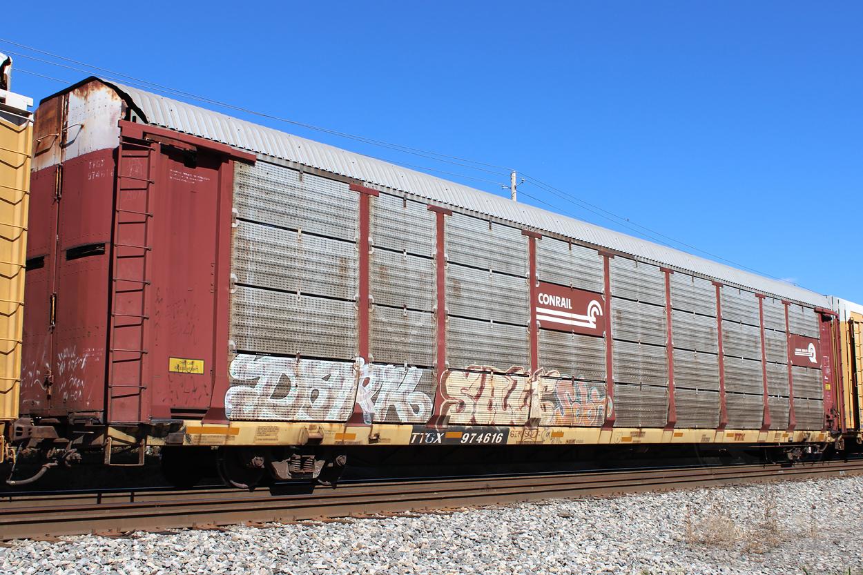 TTGX 974616 (class ASH20A, built 1-74, rblt 2-94) with class ML2L rack CR 9984 (Thrall Job 93-0782).