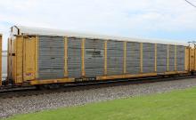 TTGX 977161 is seen in the consist of CSX Q296-12 at Cumberland, MD on 6/15/16. Rack was built as a unknown CR ML2F class rack in 4-86, then rebuilt, repainted and renumbered to NS 27065 in 8-05. Rack is now classed FB543 by NS.