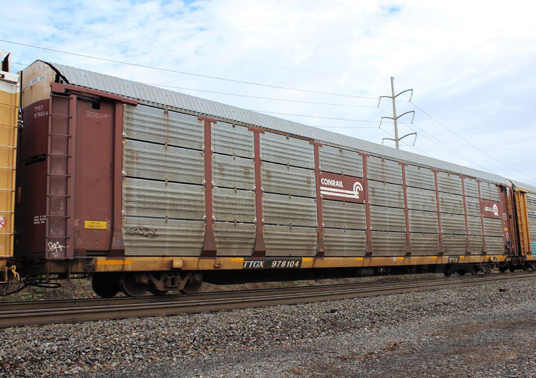 TTGX 978104 is seen in the consist of NS 18N at Wyomissing, PA on 3/25/16. Rack number is CR 10292, built 12-94 and is now owned by NS.