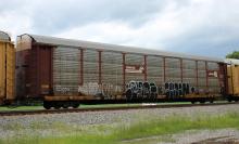 TTGX 978183 is seen in the consist of CSX Q217-11 at Hancock, WV on 7/11/20. Rack number is CR 10752, built 1-97 and is now owned by NS. Photo by Chris Carangi.