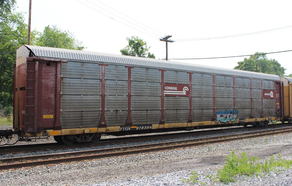 TTGX 978394 is seen in the consist of CSX Q276-10 at North Branch, MD on 6/11/15. Rack number is CR 10178, built 9-94 and is now owned by NS.