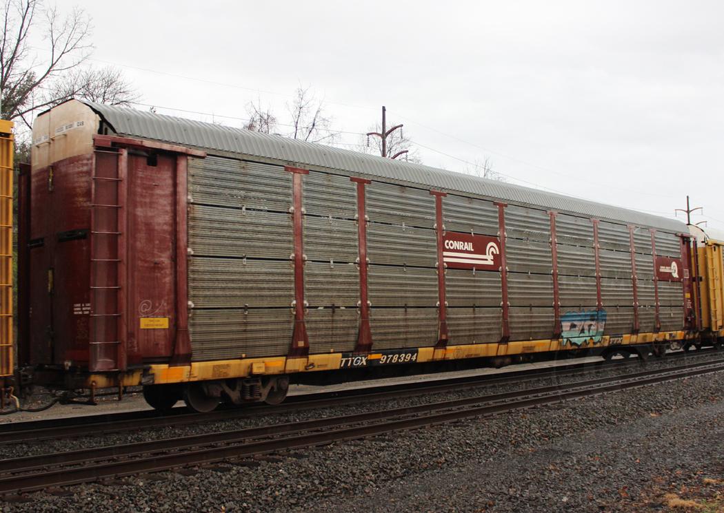 TTGX 978394 is seen in the consist of NS 11J at Wyomissing, PA on 3/25/16. Rack number is CR 10178, built 9-94 and is now owned by NS.