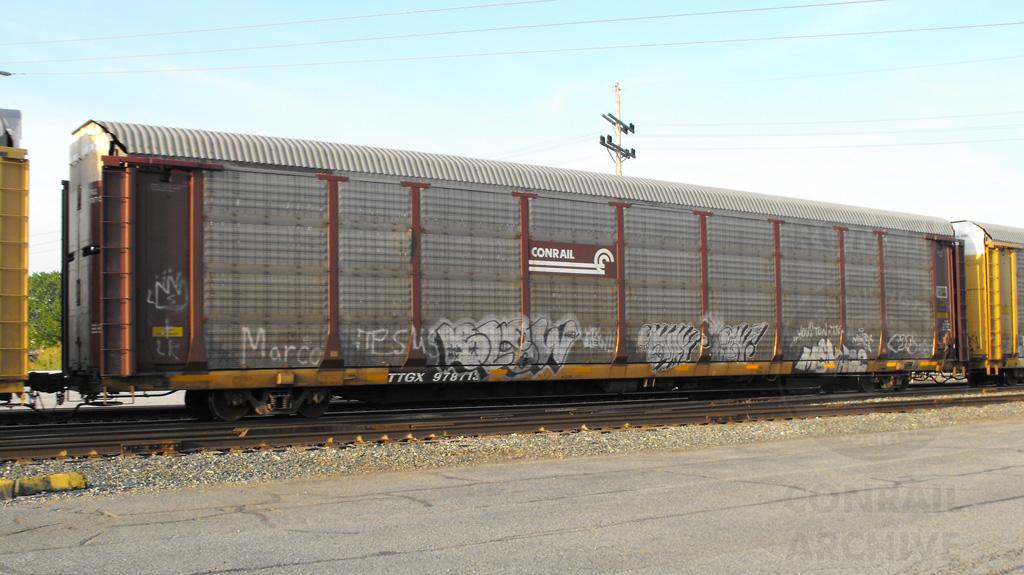 TTGX 978713 is seen on Q217-17 at Elsmere DE on 7/17/12. Rack number is CR 10855, built 10-97and is now owned by NS.