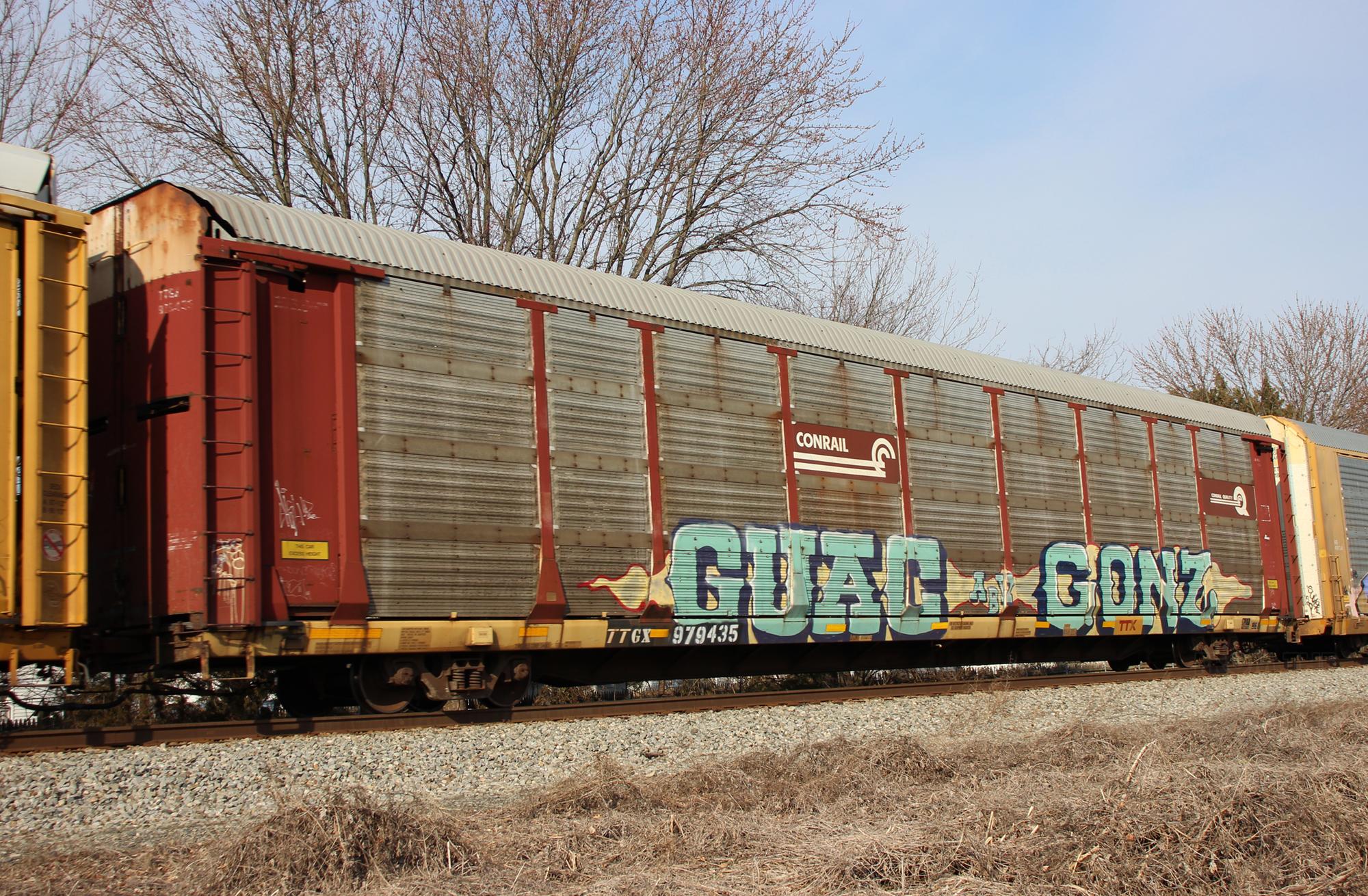 TTGX 979435 is seen in the consist of CSX Q216-02at Newark, DE on 3/5/22. Rack number is CR 10133, built 4-94 and is now owned by CSX.