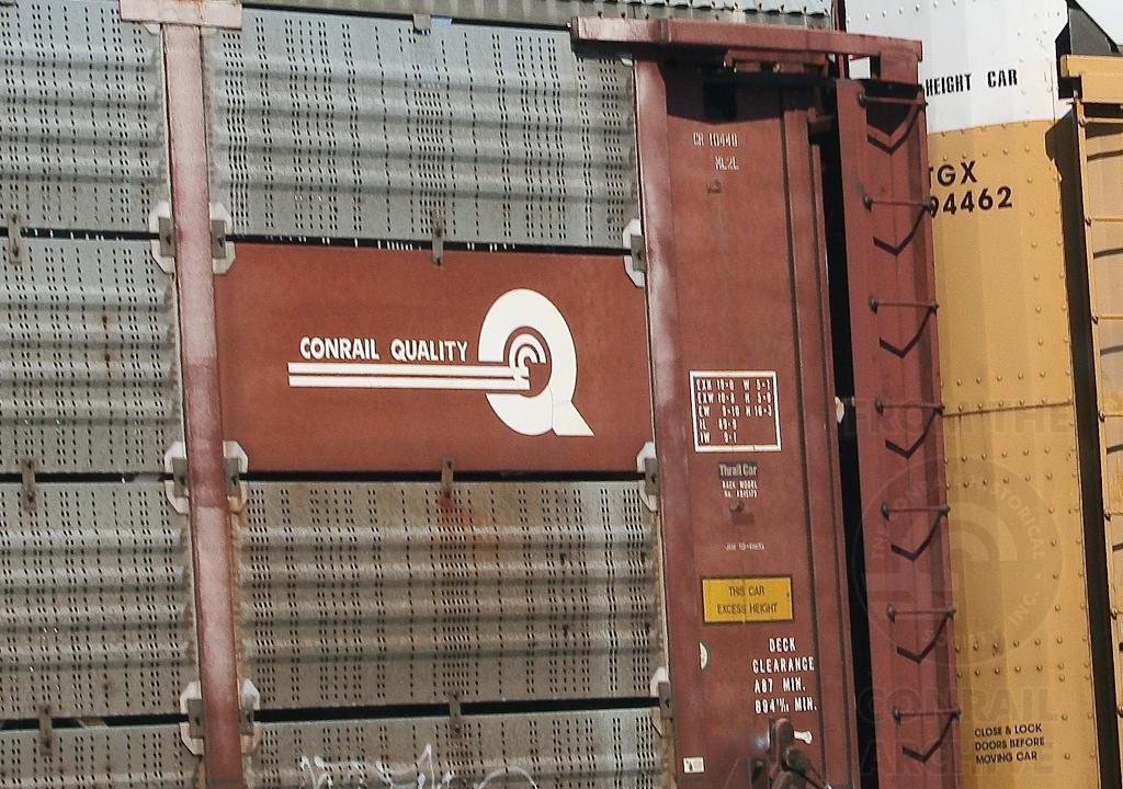 Detail of former CR TTGX 980715 (rack 10448) heading southbound through the Dividend Drive gates in Peachtree City, GA on April 30, 2015.