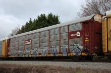 TTGX 980848 is seen in the consist of CSX Q216-06 at Newark, DE on 4/9/22. Rack number is CR 10098, built 4-94 and is now owned by CSX.