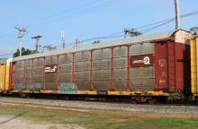 TTGX 990270 is seen in the consist of CSX Q216-20 at Newark, DE on 7/22/14. Rack number is CR 10028, built 3-94 and is now owned by NS.