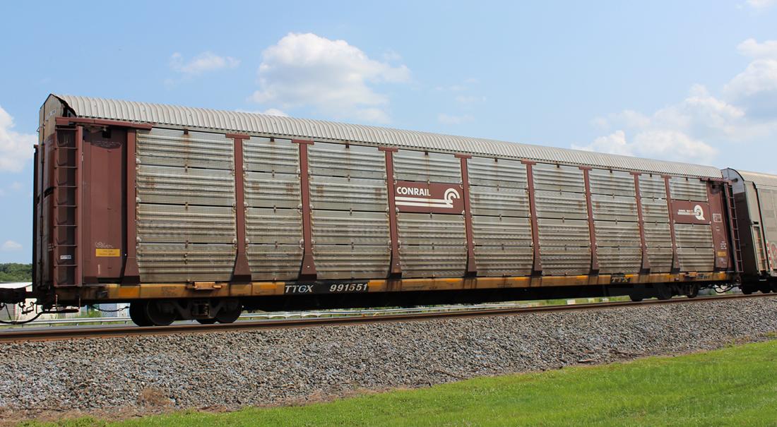 TTGX 991551 is seen in the consist of NS 11J at Harrisburg, PA on 8/9/14. Rack number is CR 10313, built 12-94 and is now owned by CSX.