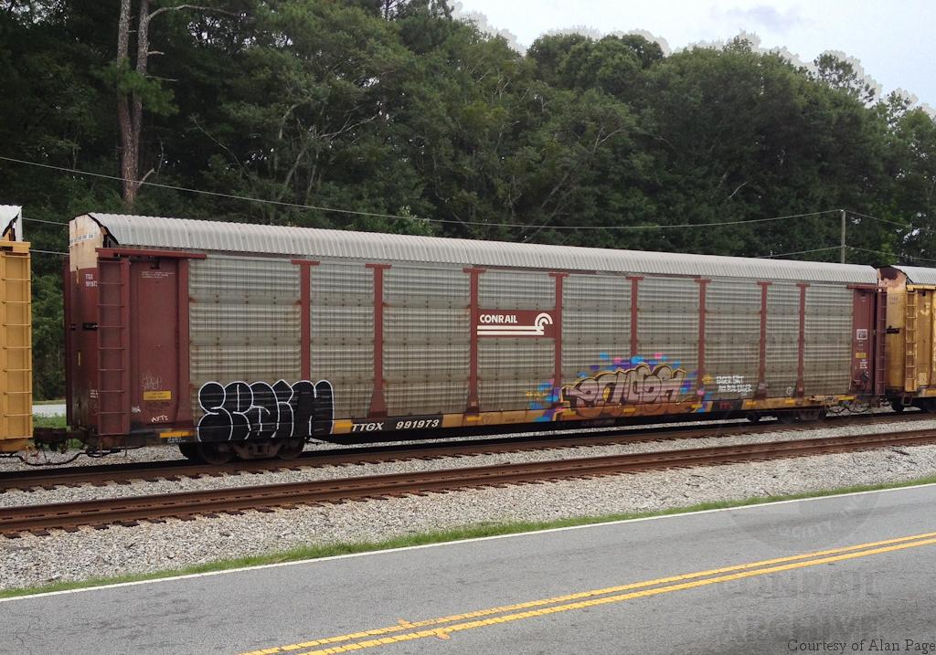 TTGX 991973 ML2L class autorack rolls eastbound through Union City on July 28, 2017.