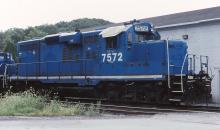 WW 7572 is seen at Gore WV on 8/19/97. Unit is ex CR 7572/CR 7262/PC 7262/PRR 7262, which was built as a GP9 is 11-59.